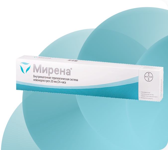 Мирена — внутриматочный контрацептив. Представляет собой Т-образную эластомерную систему (устройство), вертикальный стержень которой состоит из левоноргестрелсодержащего контейнера, покрытого специальной мембраной, через которую непрерывно происходит контролируемая диффузия левоноргестрела по 20 мкг/сут (в начальный период).
